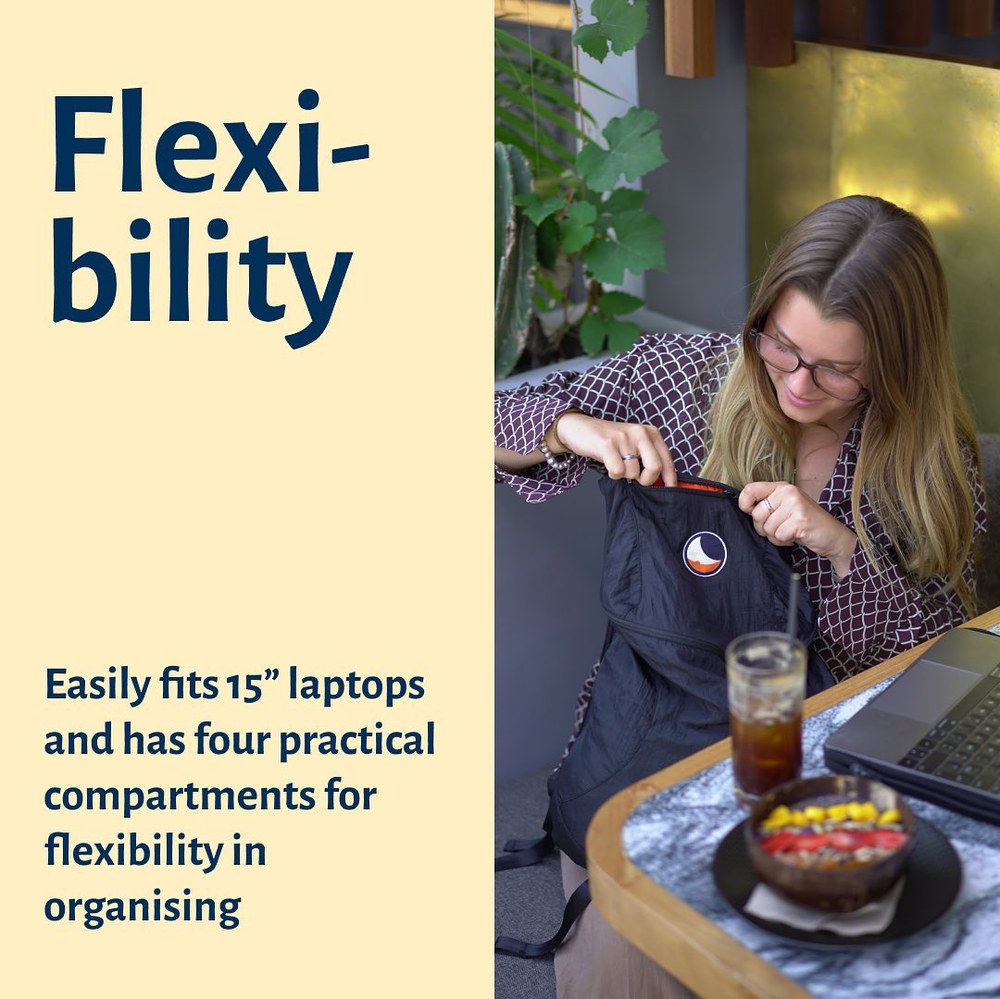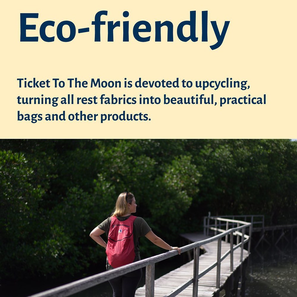 A Ticket To The Moon függőágyak gyártása során keletkezett maradék anyagból készült mini hátizsák továbbfejlesztett változata.