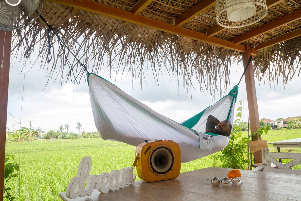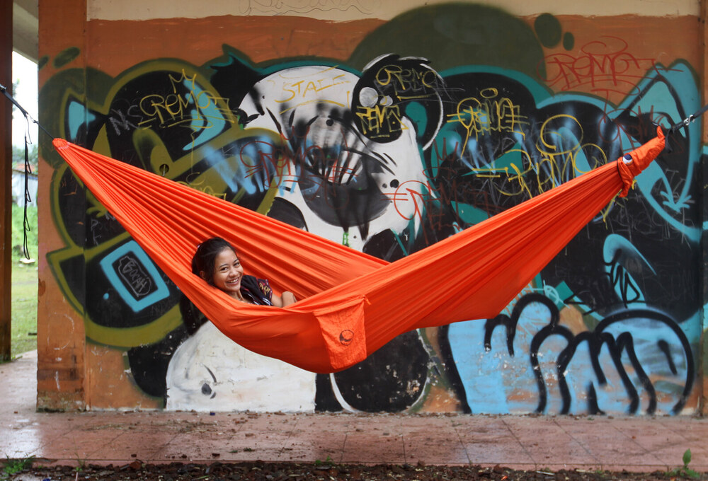 Az eredeti ejtőernyőselyem függőágy.