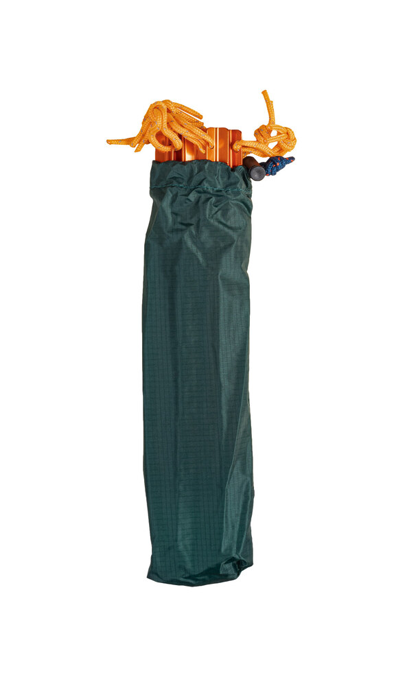 Minimális tömege 588 g (a 4 rögzítő zsinórt is beleértve), így tökéletes felszerelésed lehet hátizsákos túrákon, ahol számít a csomagod mérete, de viheted akár a teljes szettet is, ami összesen 750 g (14 zsinórral és 6 Y cövekkel).
