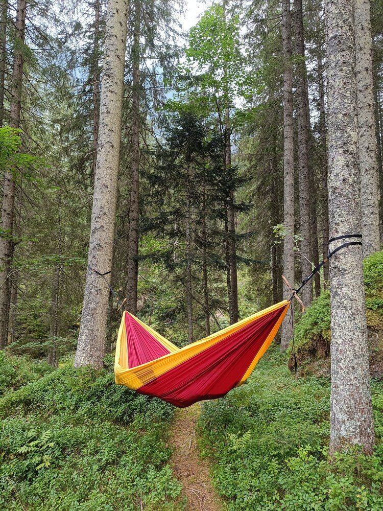 Az eredeti ejtőernyőselyem függőágy, extra nagy méretben. Harminc centivel szélesebb, mint az Original (double) méret.
