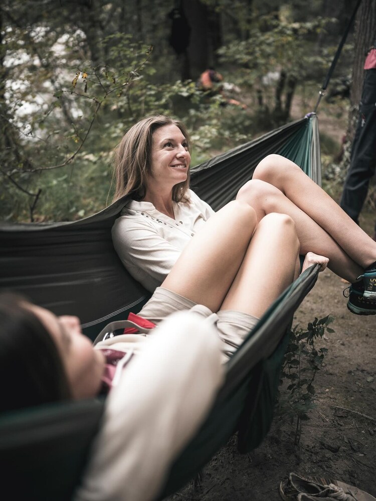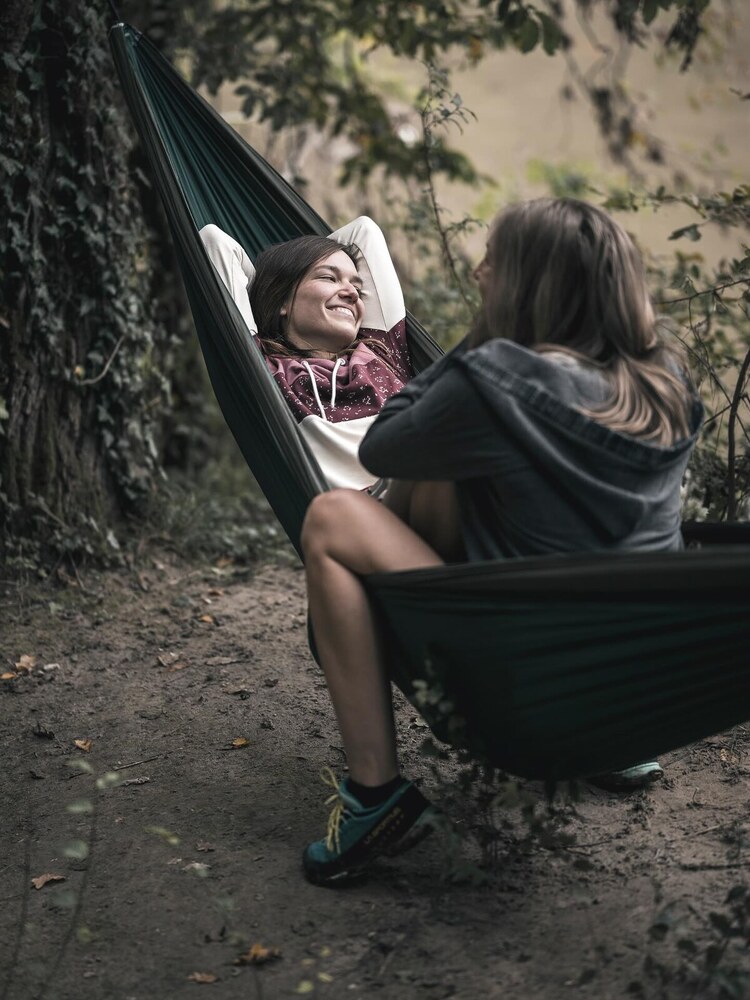 Az eredeti ejtőernyőselyem függőágy, extra nagy méretben. Harminc centivel szélesebb, mint az Original (double) méret.
