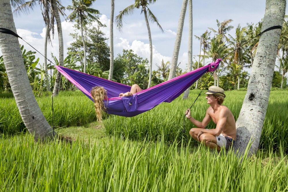Az eredeti ejtőernyőselyem függőágy, extra nagy méretben. Harminc centivel szélesebb, mint az Original (double) méret.