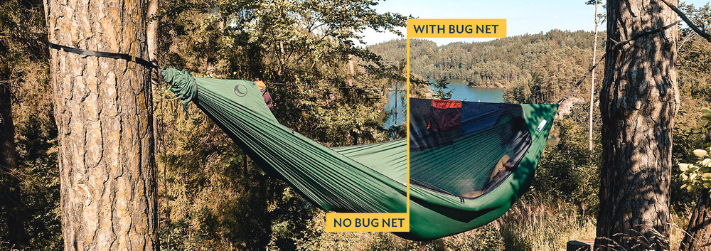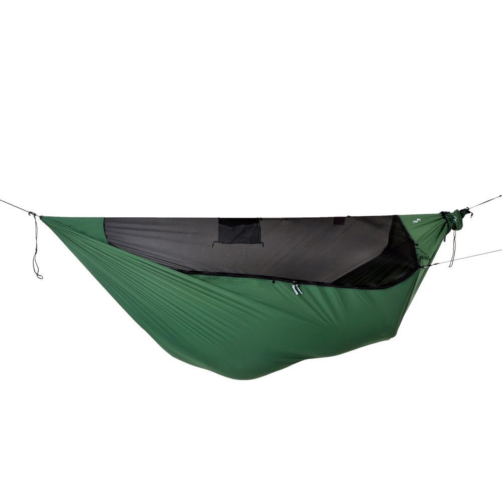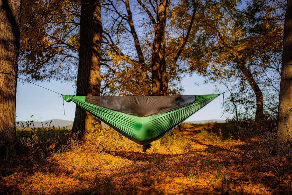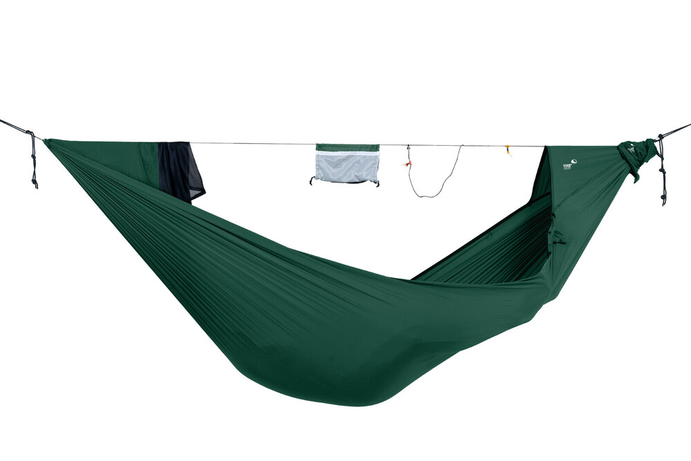 Újdonság a TTTM választékában a szúnyoghálóval egybeépített ultralight túrafüggőágy. Könnyen használható megoldás a rovarvédelem mellett történő szabadban alváshoz. A kényelem és a funkcionalitás maximalizálva, a tömeg pedig minimalizálva.