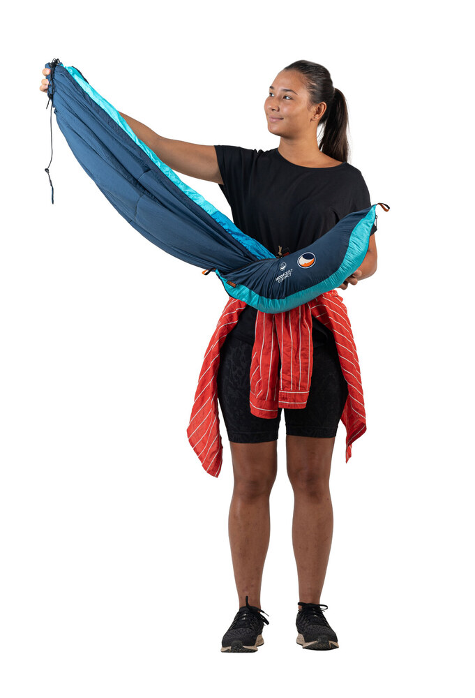 A magasabb szintű függőágyazás alapkelléke egy topquilt. Miután az alsó szeigetelésed már megvan (ami elengedhetetlen a függőágyban alváshoz), szükséged lesz egy kompakt méretű takaróra. A hálózsák innetől felesleges, és amúgy is macerás a használata függőágyban. A topquilt körülöleli a lábad, így nem csúszik le semerre,